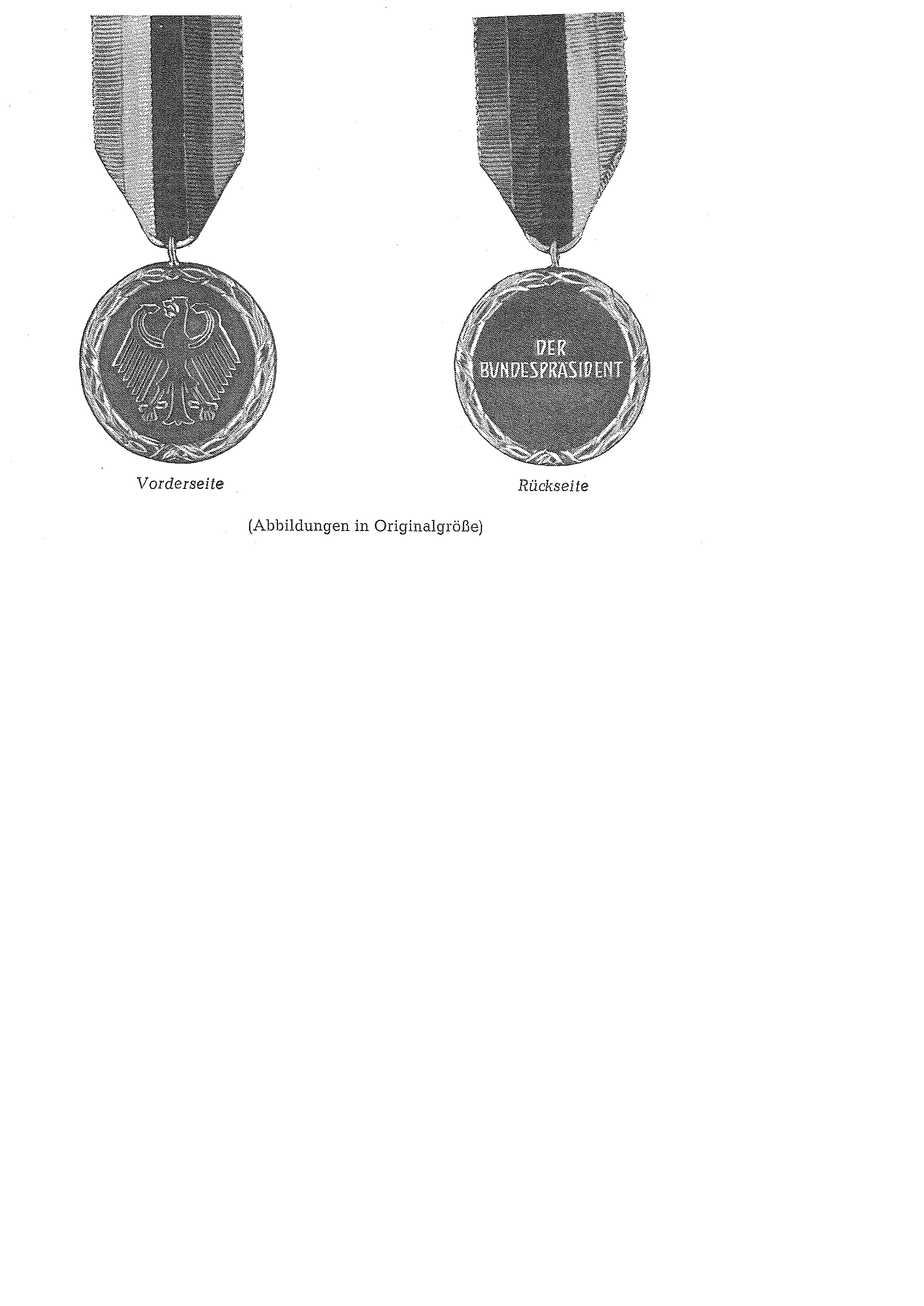 1Das Ehrenzeichen ist eine Medaille aus Silber, die auf der Vorderseite den Bundesadler und auf der Rückseite die Aufschrift "Der Bundespräsident" sowie das Verleihungsdatum trägt.