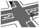 Das Sinnbild weist auf ein Autobahnkreuz oder Autobahndreieck hin; es weist auch auf Kreuze und Dreiecke von Autobahnen mit autobahnähnlich ausgebauten Straßen des nachgeordneten Netzes hin. |