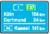 Die Entfernungstafel gibt Fernziele und die Entfernung zur jeweiligen Ortsmitte an. Ziele, die über eine andere als die gerade befahrene Autobahn zu erreichen sind, werden unterhalb des waagerechten Striches angegeben. |