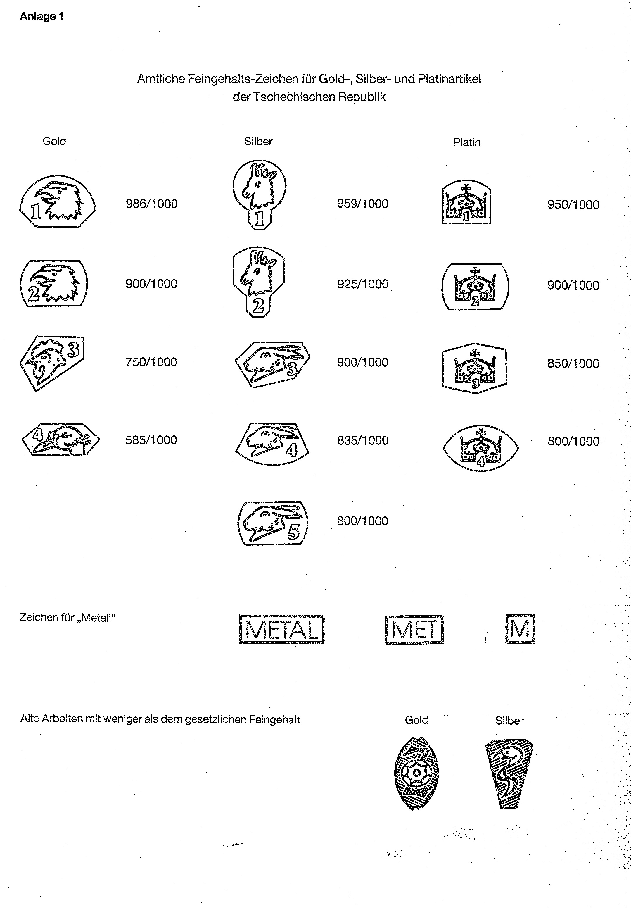 Auf Grund des § 4 Abs. 2 Nr. 3 des Warenzeichengesetzes in der Fassung der Bekanntmachung vom 2. Januar 1968 (BGBl. I S. 1, 29) werden amtliche Prüf- und Gewährzeichen bekanntgemacht, die in der Tschechischen Republik eingeführt sind (Anlage 1).