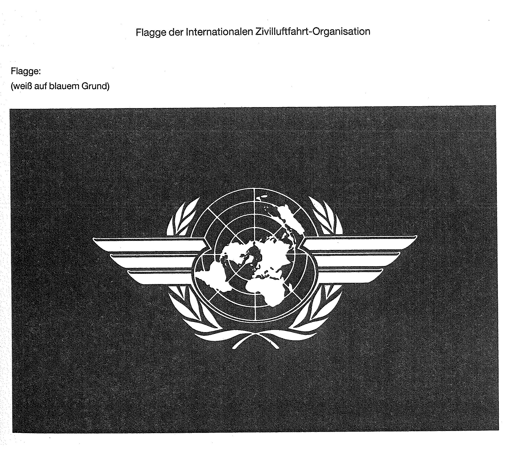 neben den in den Bekanntmachungen vom 12. September 1963 (BGBl. I S. 781) und vom 14. April 1975 (BGBl. I S. 962) wiedergegebenen Bezeichnungen und Kennzeichen auch die Flagge der Internationalen Zivilluftfahrt-Organisation (Anlage 3)