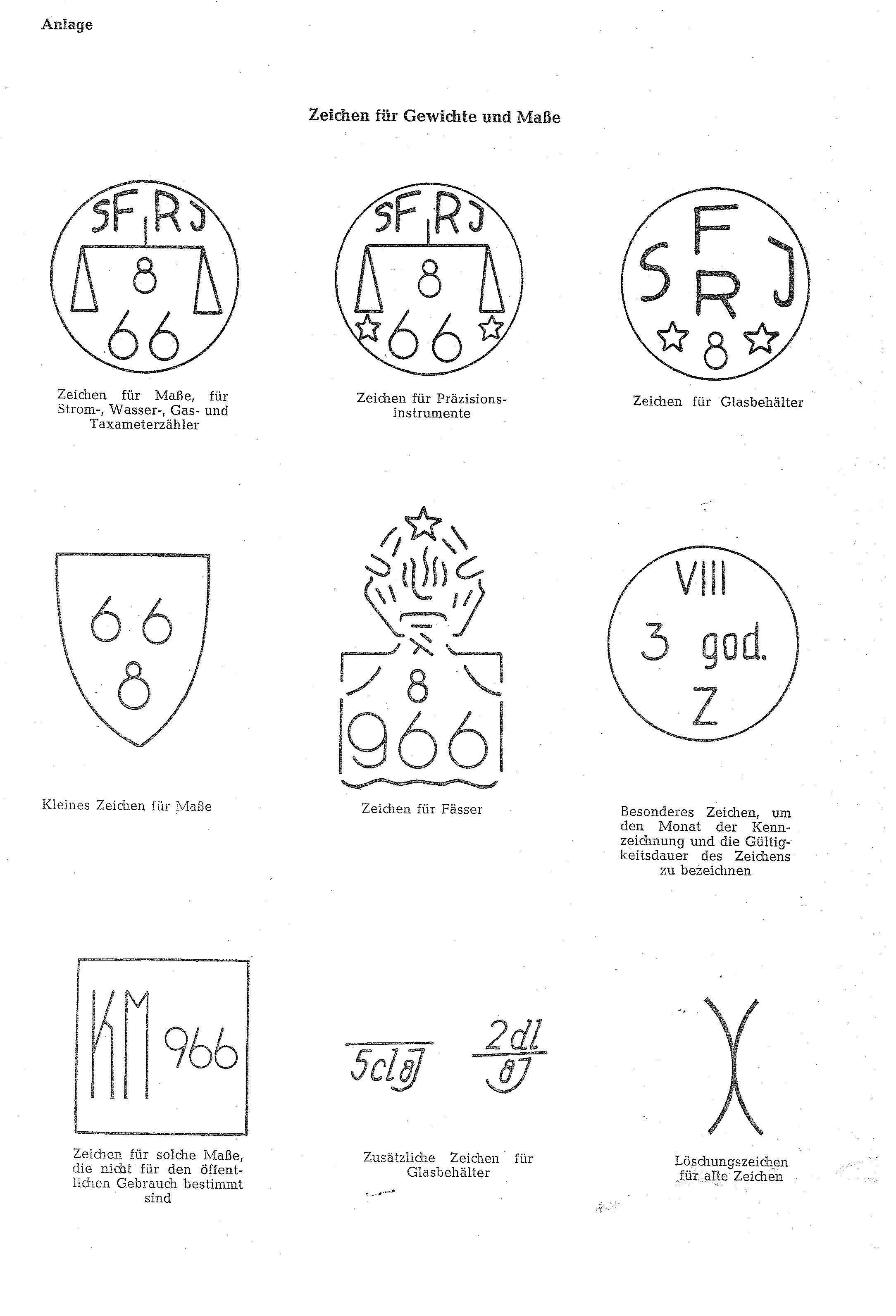(1) Auf Grund des § 4 Abs. 2 Nr. 3 des Warenzeichengesetzes in der Fassung vom 2. Januar 1968 (Bundesgesetzbl. I S. 1, 29) werden in der Anlage amtliche Prüf- und Gewährzeichen bekanntgemacht, die in der Sozialistischen Föderativen Republik Jugoslawien eingeführt sind.