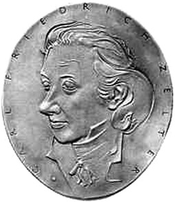 Die Zelter-Plakette ist als Auszeichnung für Chöre bestimmt, die sich in langjährigem Wirken besondere Verdienste um die Pflege der Chormusik und des deutschen Volksliedes und damit um die Förderung des kulturellen Lebens erworben haben. Sie besteht aus einer Plakette, die auf der Vorderseite das Bildnis Carl Friedrich Zelters und auf der Rückseite den Bundesadler mit der Umschrift „Für Verdienste um Chorgesang und Volkslied“ zeigt. Form und Größe der Zelter-Plakette sind auf einer Mustertafel festgelegt.