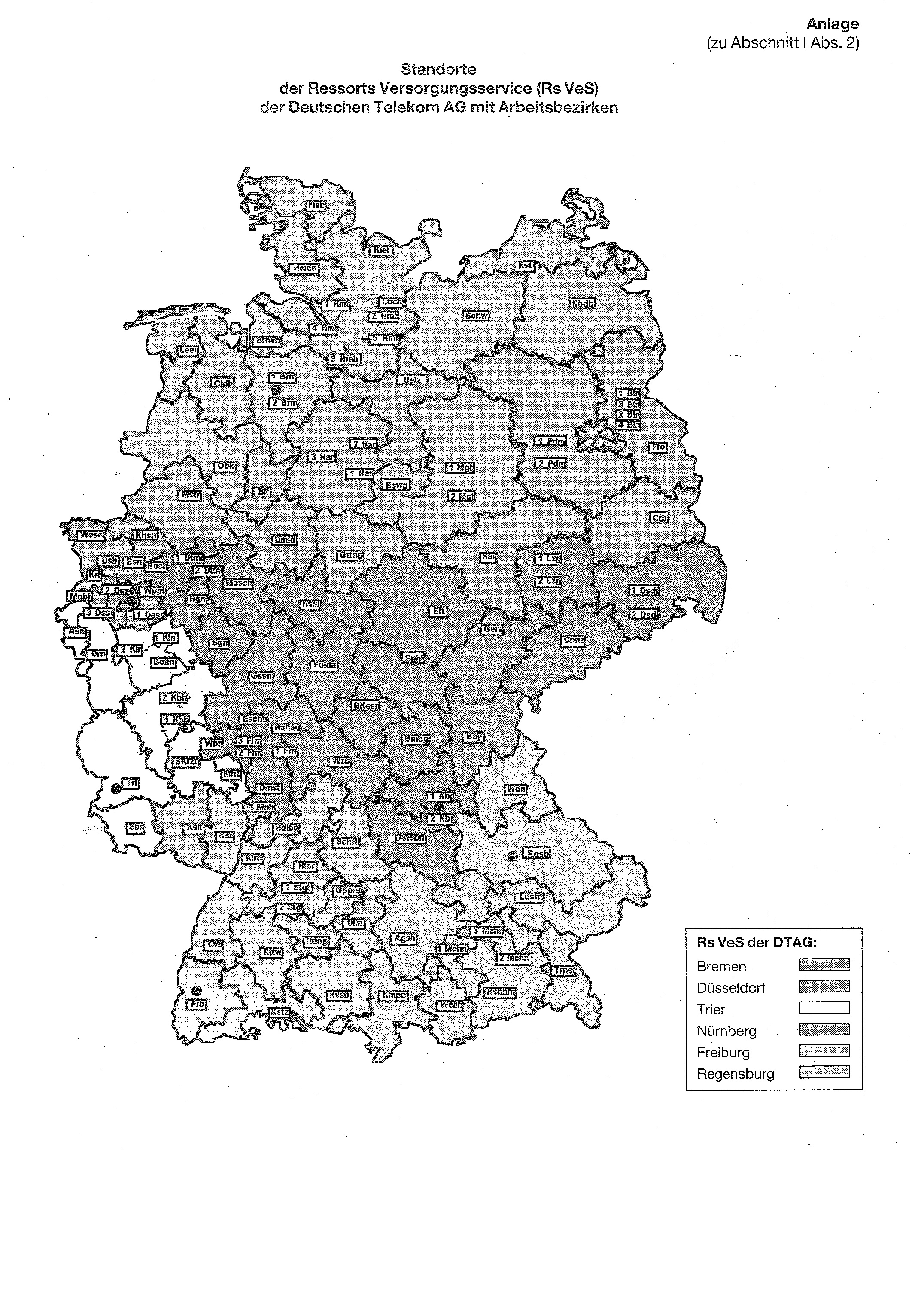 Die Zuständigkeit für vorhandene Versorgungsfälle, die bis zum 31. Dezember 1996 von Organisationseinheiten der Deutschen Post AG wahrgenommen wurde, wird ab dem 1. Januar 1997 von folgenden Organisationseinheiten der Deutschen Telekom AG wahrgenommen: